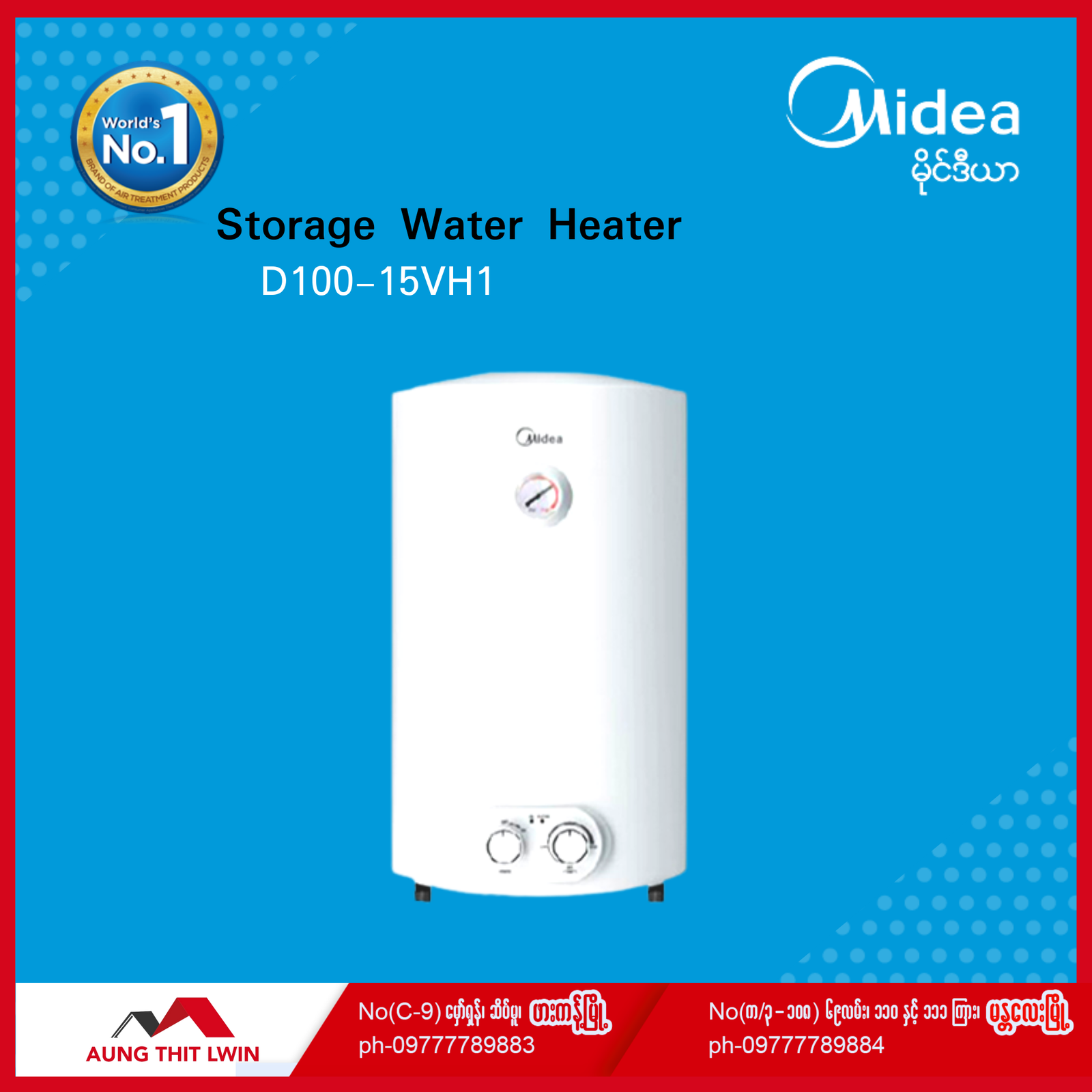 မိုင်ဒီယာရေသိုလှောင်ကန်လျှပ်စစ်ရေပူစက် D100-15VH1